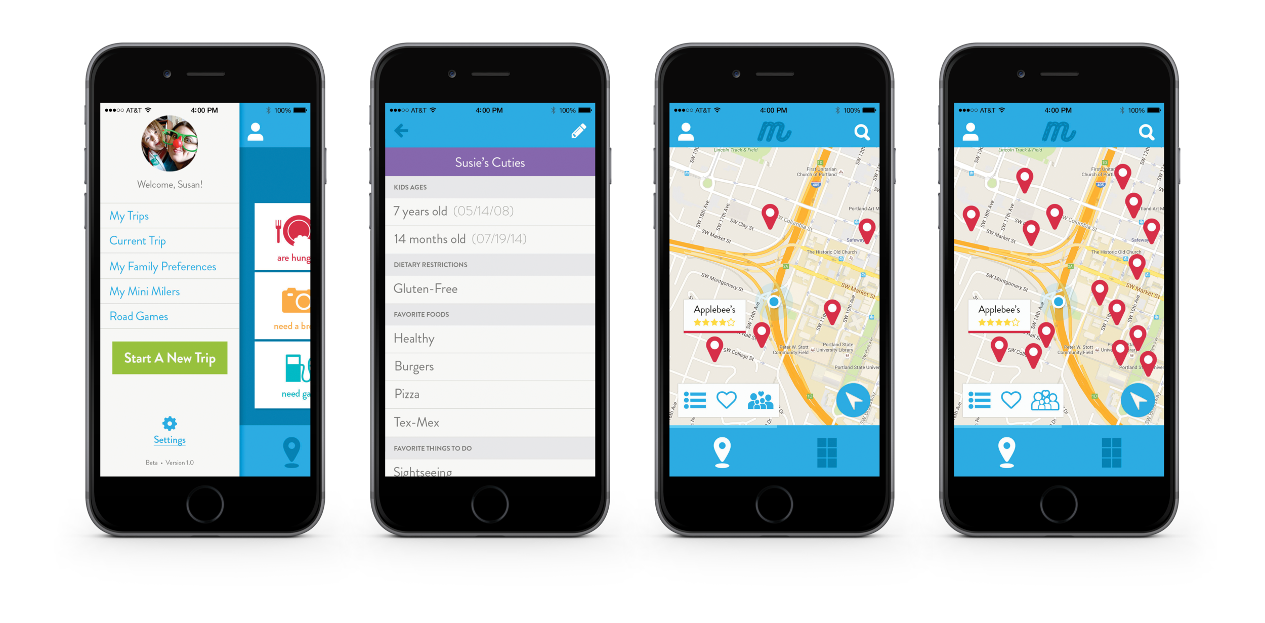 It is a one stop mobile app that helps them navigate and plan road trips that are tailored specifically to their family. Mini Miles also helps parents search along the road for essentials like food and changing tables so that they can plan for the unexpected. Our goal is to make this the best road trip yet!